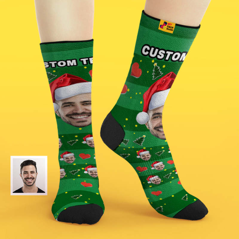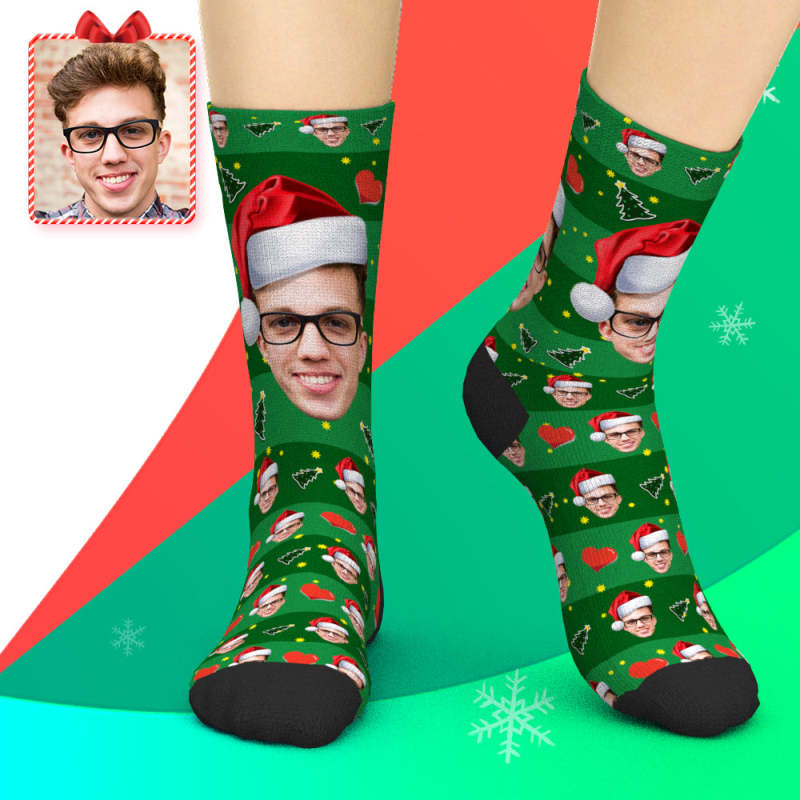 Custom Face Socks Christmas Hat Socks Add Pictures And Name