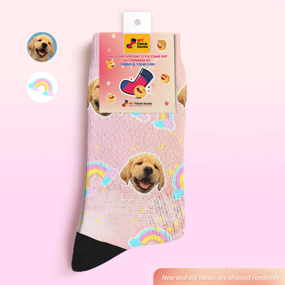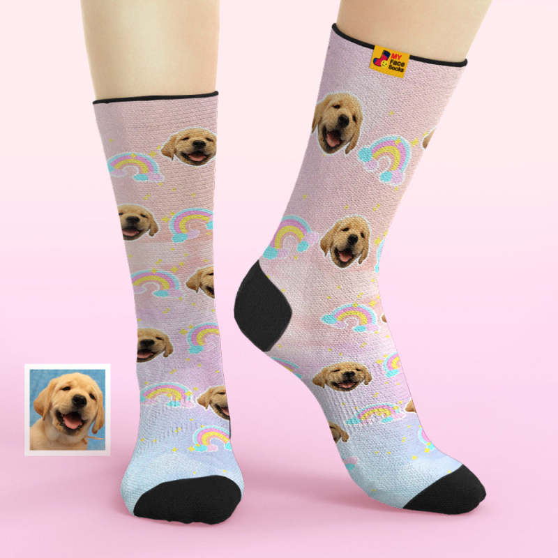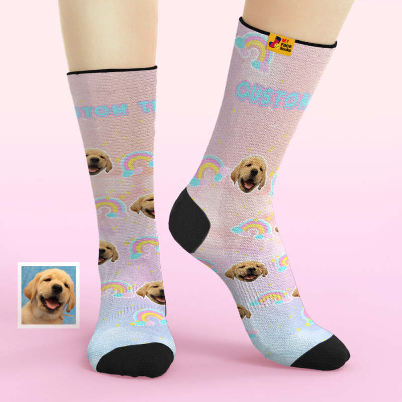 Custom Face Socks Add Pictures and Name Rainbow Element Gradient Breathable Soft Socks