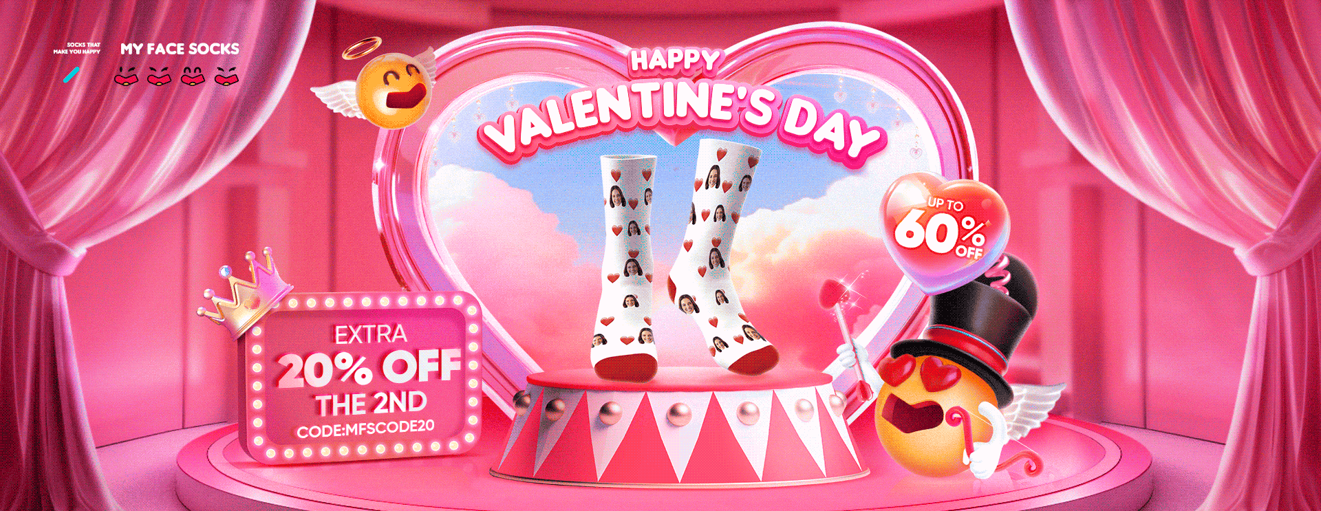 Custom Pink Heart Face Socks Personalized Valentine Day Socks with Photo Cute Heart Pattern Couple Gift -