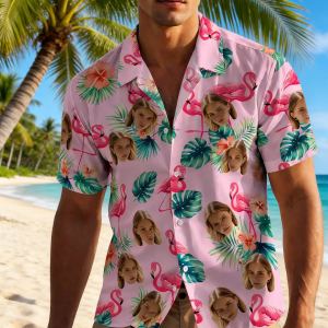 -69%Custom Hawaiian Shirt With Face Personalized Tropical Summer Flamingo Aloha Shirt With Pocket Gift For Lovers16066011285310061029150065 -