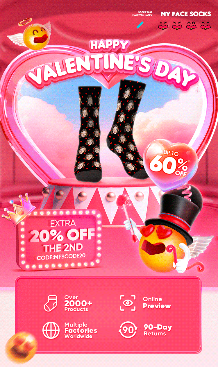 Custom Pink Heart Face Socks Personalized Valentine Day Socks with Photo Cute Heart Pattern Couple Gift -
