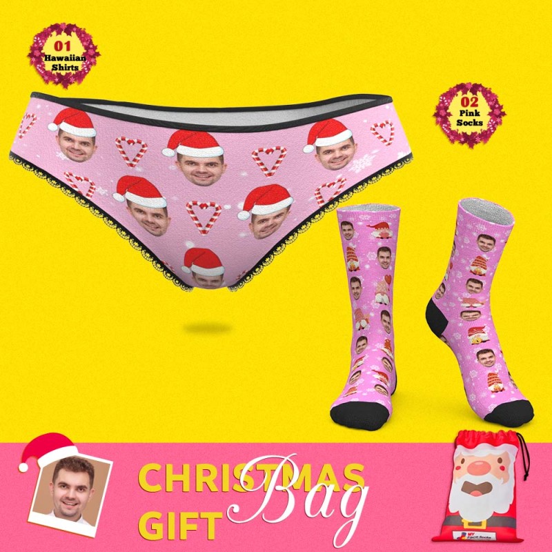 Christmas Gift Bags Custom Face Panties And Socks Set For Her Pink Xmas - MyFaceSocks Christmas Gift Bags Custom Face Panties And Socks Set For Her Pink Xmas - MyFaceSocks