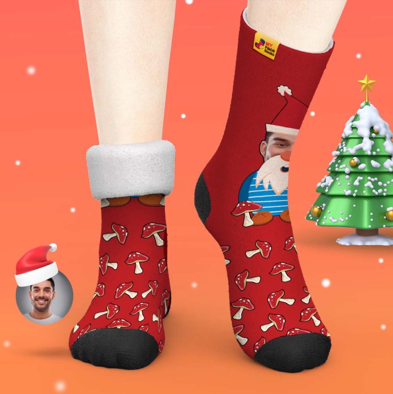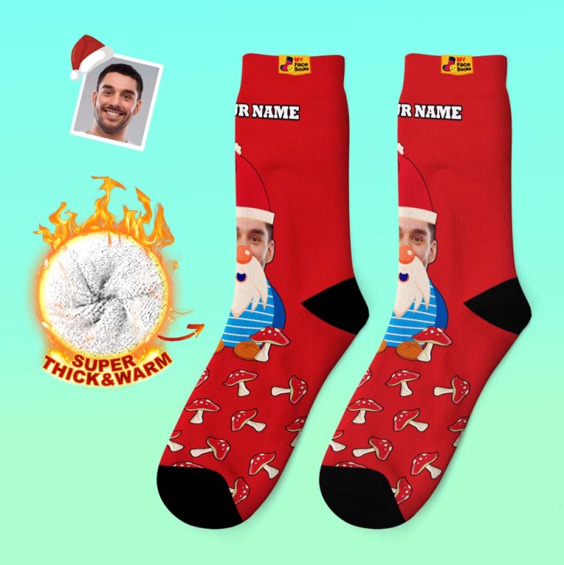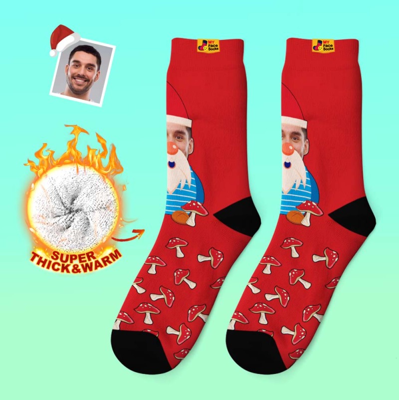 Christmas Gifts,Custom Thick Socks Photo 3D Digital Printed Socks Autumn Winter Warm Socks Christmas Gnome Mushrooms