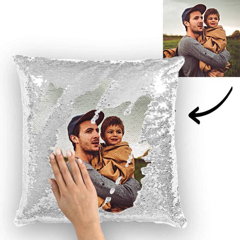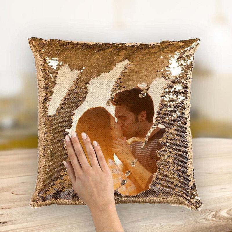 • Personalized photo pillow with magic sequins