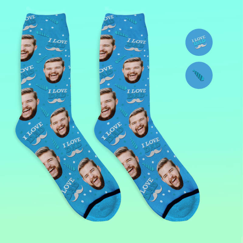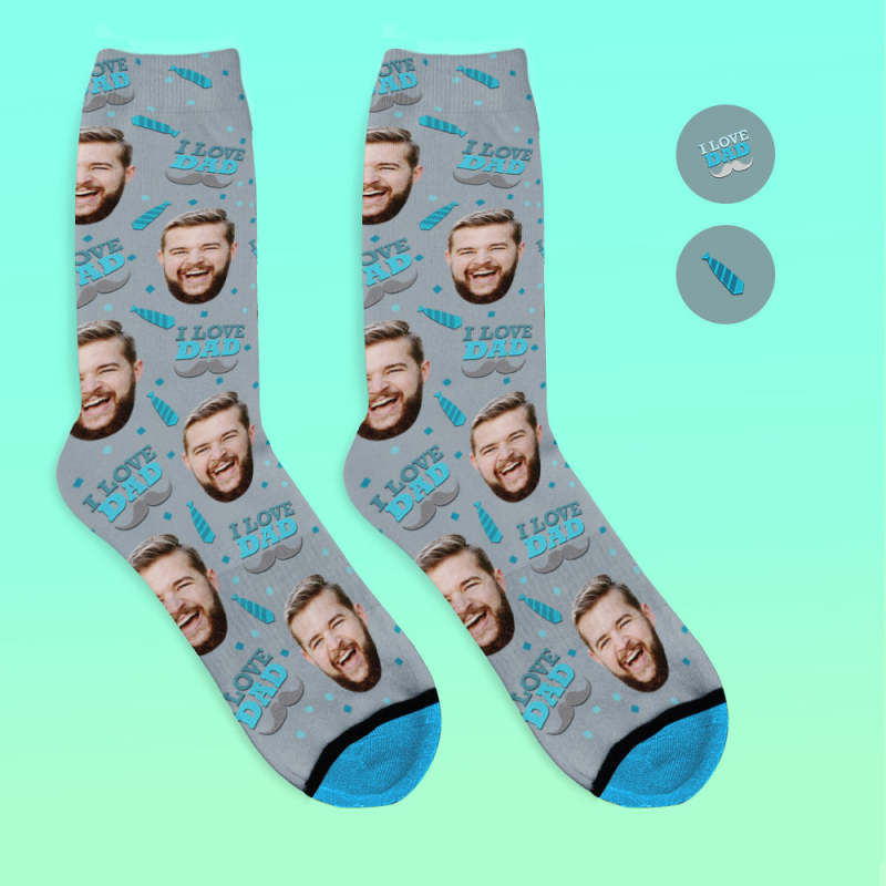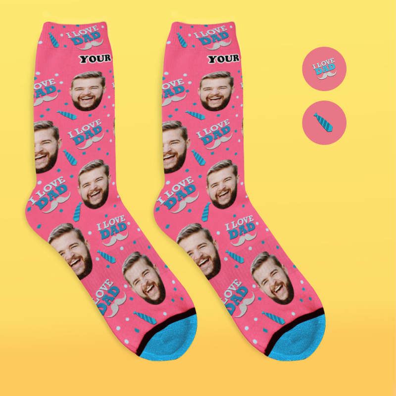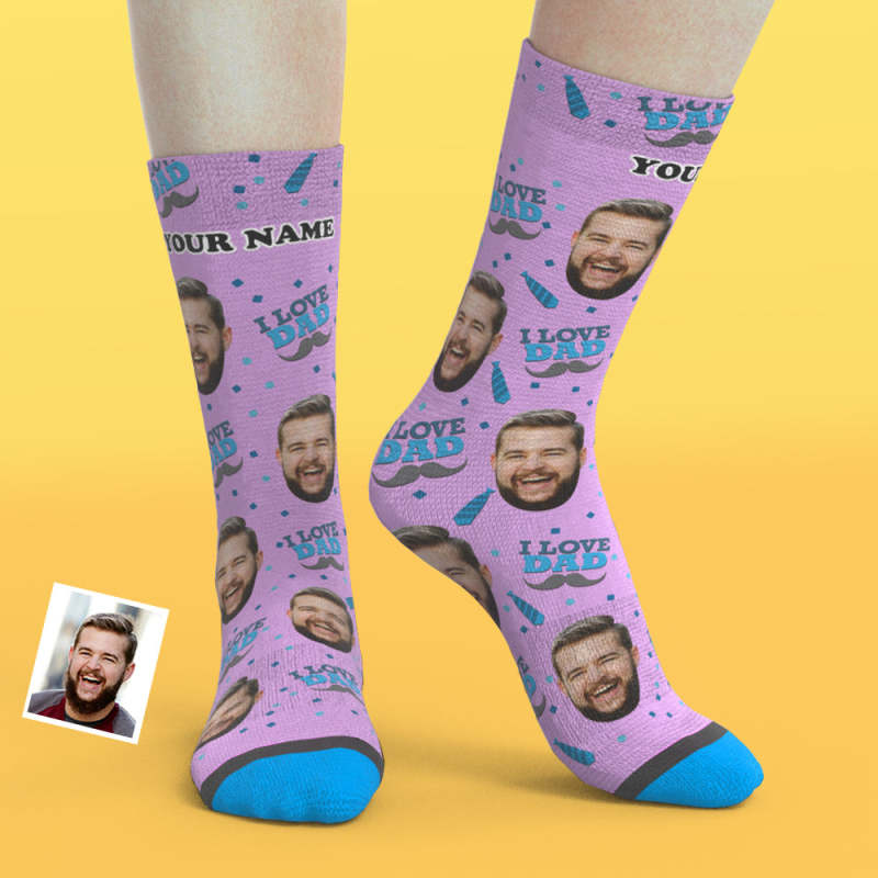 Custom 3D Digital Printed Face Socks Add Pictures and Name - I Love Dad