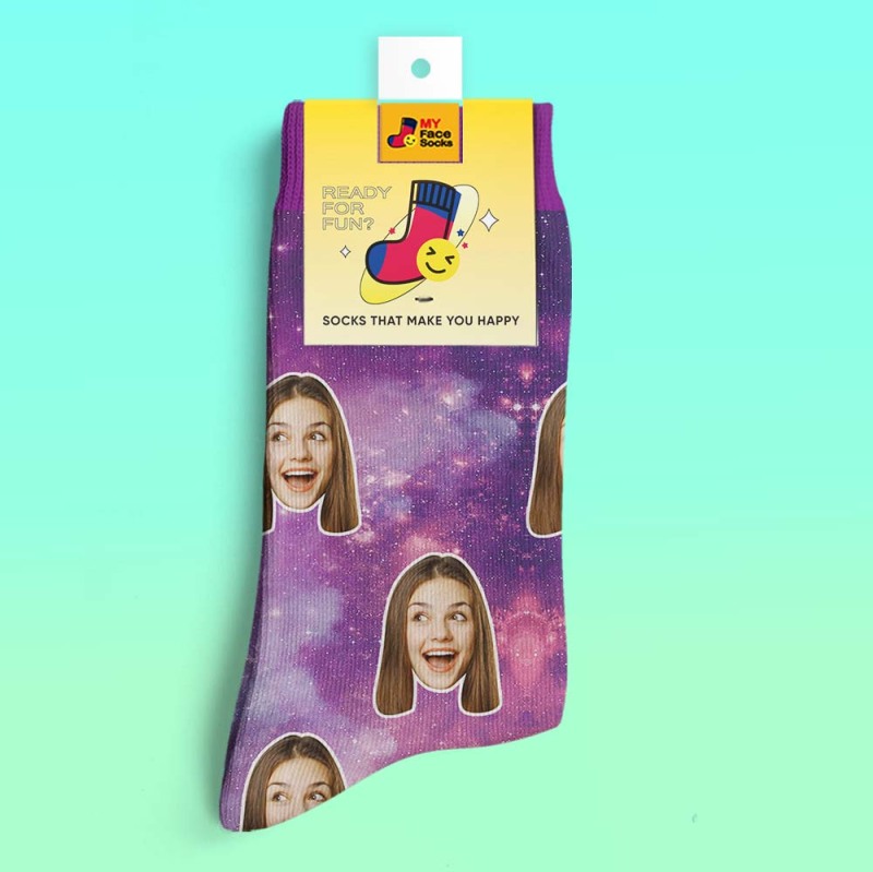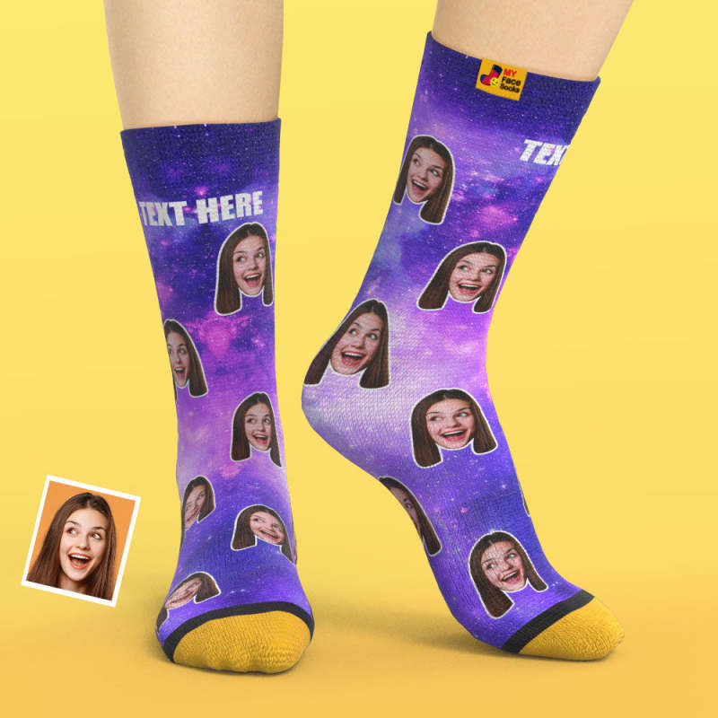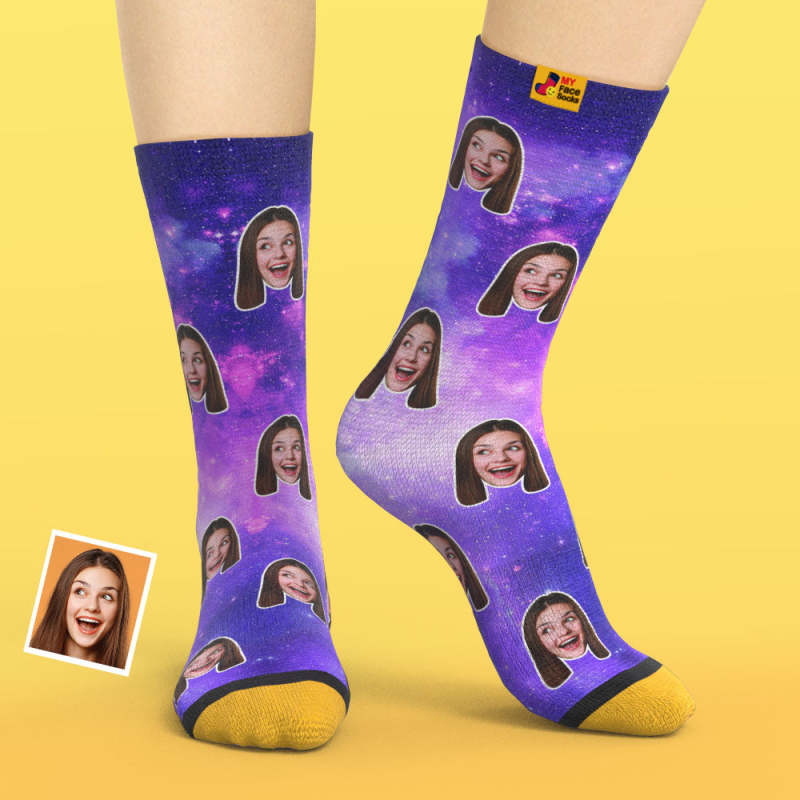 Custom 3D Digital Printed Socks My Face Socks Add Pictures and Name - Galaxy