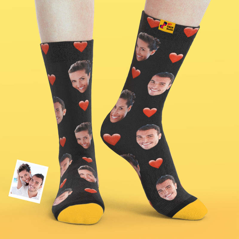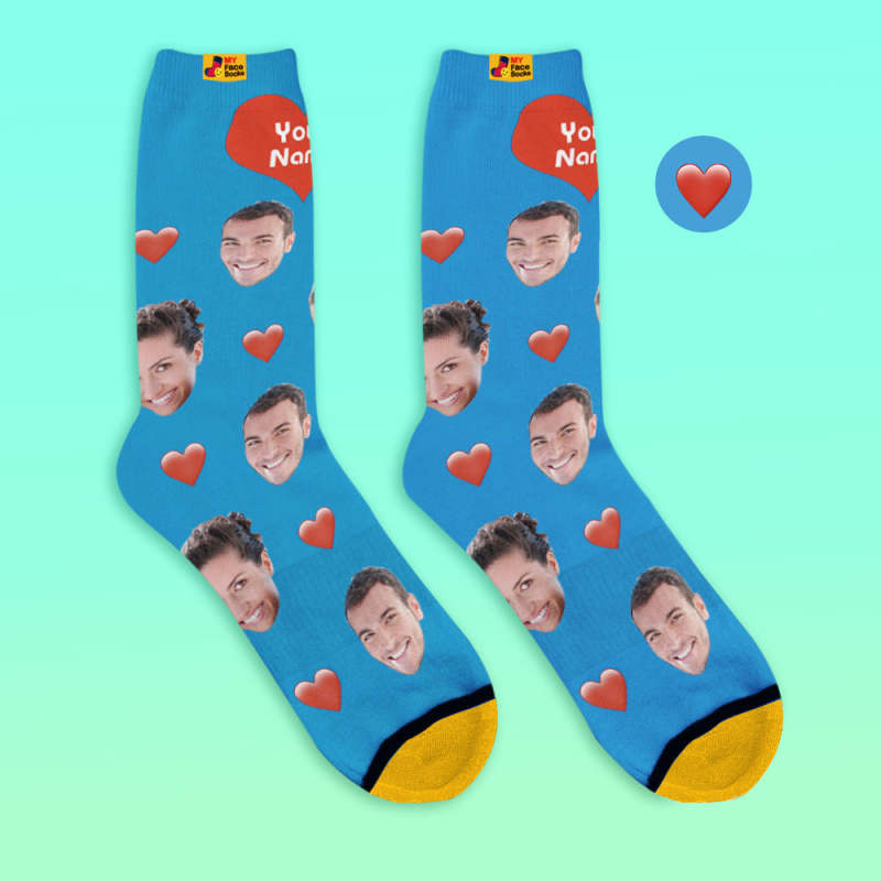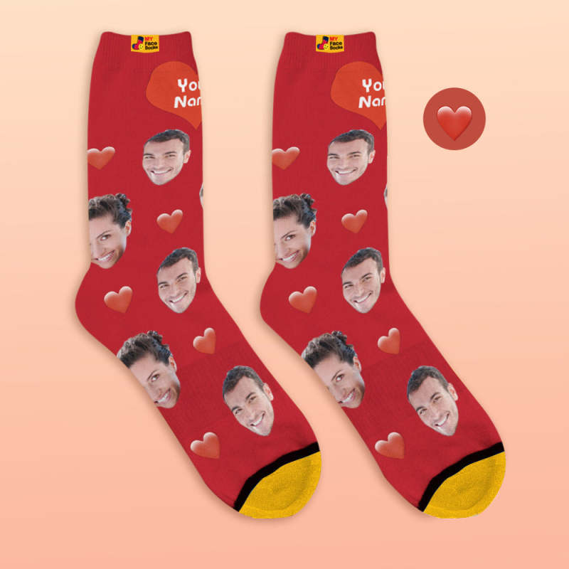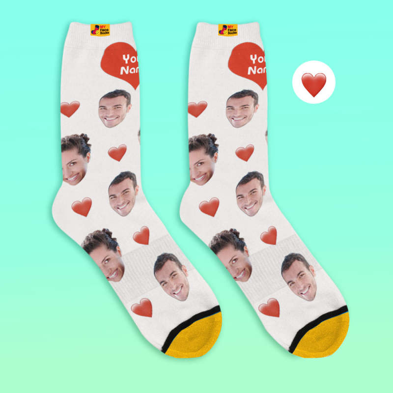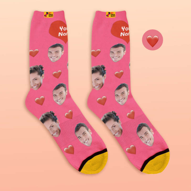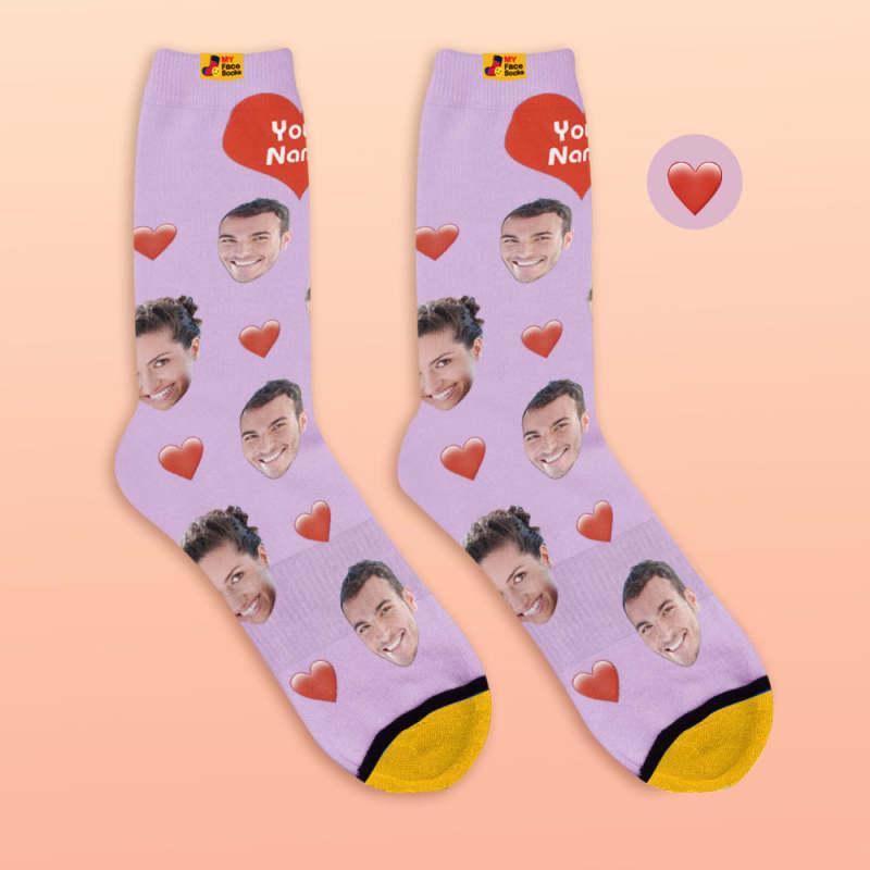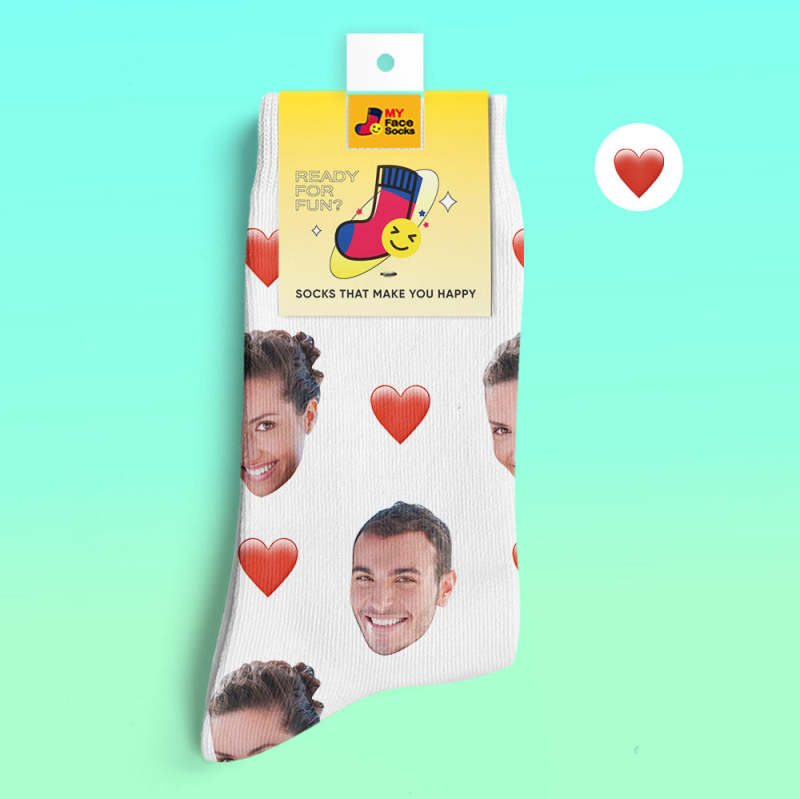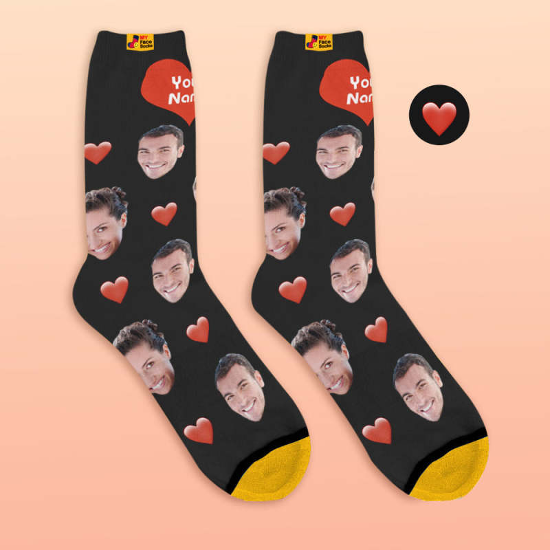 Custom 3D Digital Printed Socks My Face Socks Add Pictures and Name - Heart