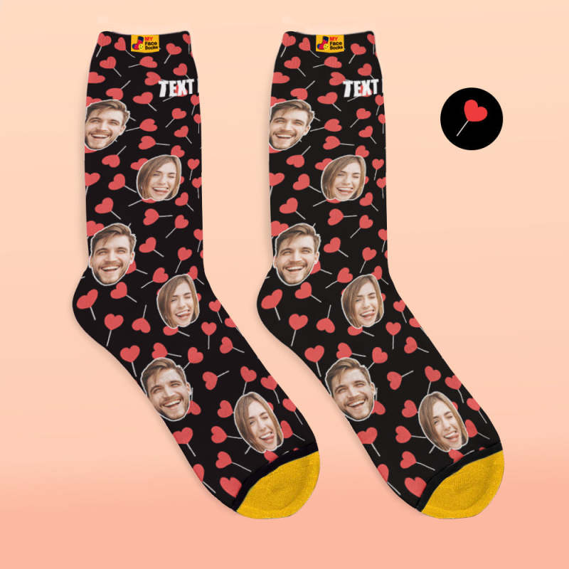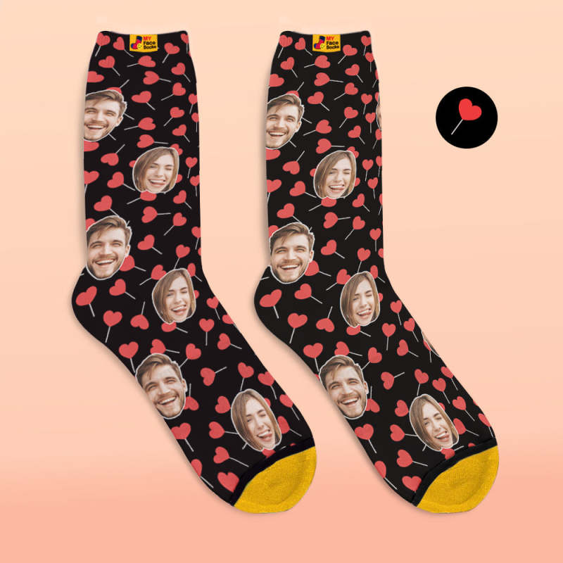 Custom 3D Digital Printed Socks My Face Socks Add Pictures and Name - Heart Lollipops