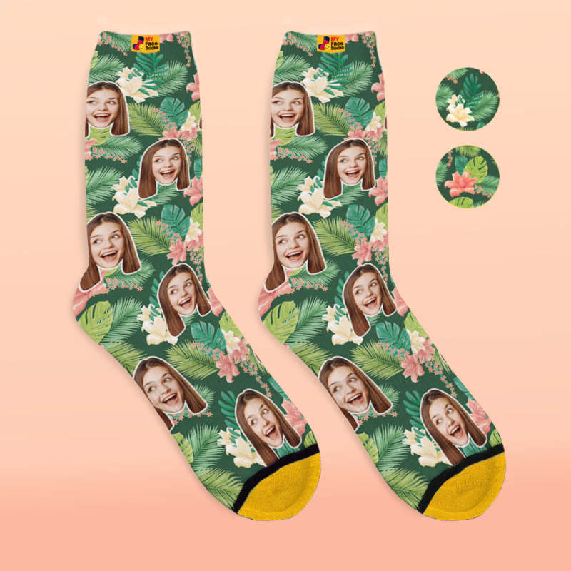 Custom 3D Digital Printed Socks My Face Socks Add Pictures and Name - Leaves And Flowers