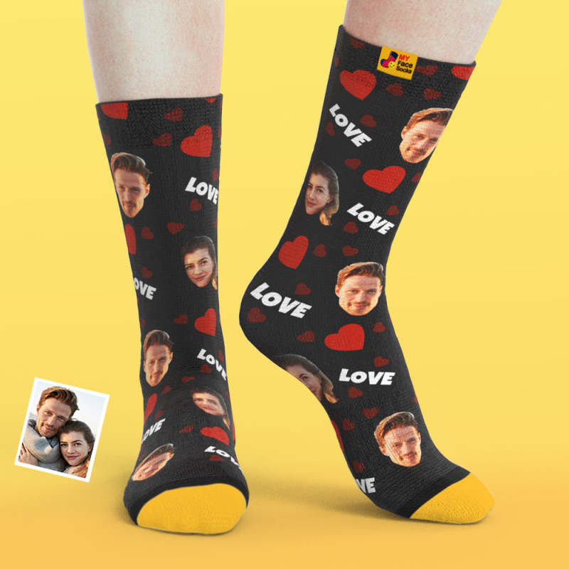 Custom 3D Digital Printed Socks My Face Socks Add Pictures and Name - Love