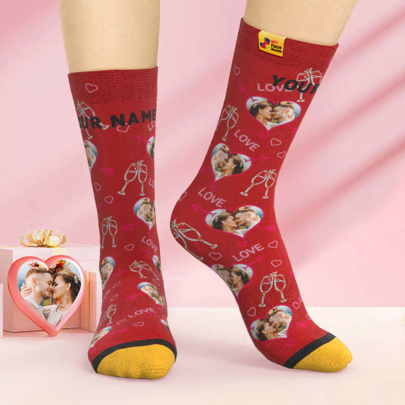 Custom 3D Digital Printed Socks Valentine's Day Gift LOVE Heart Face Socks