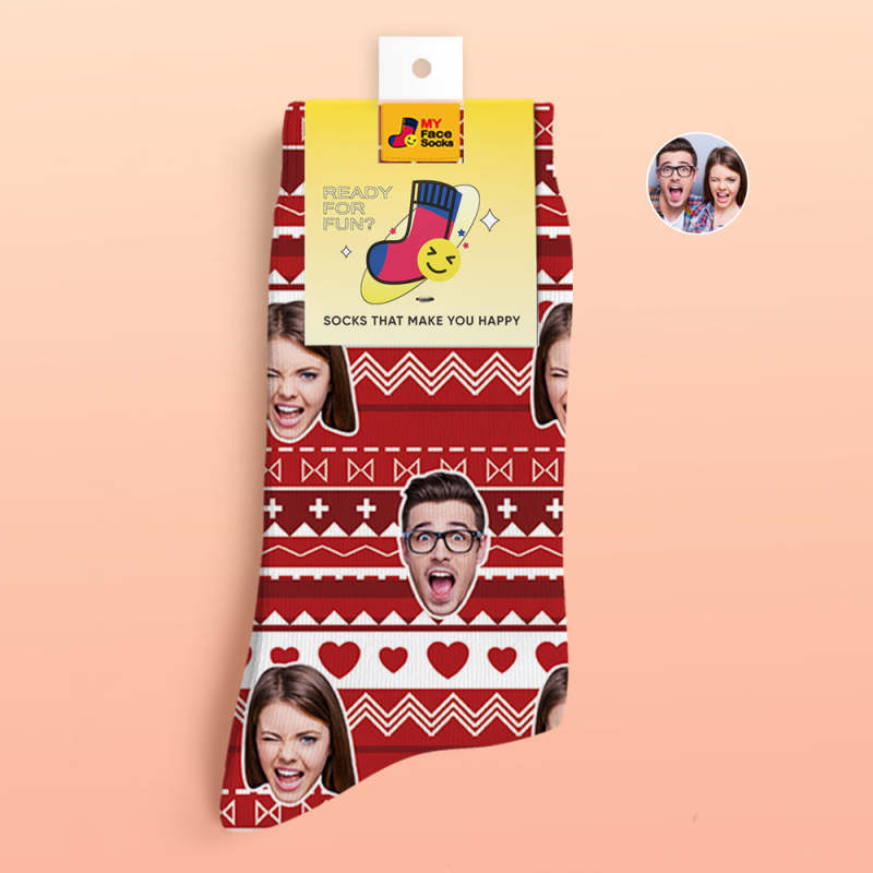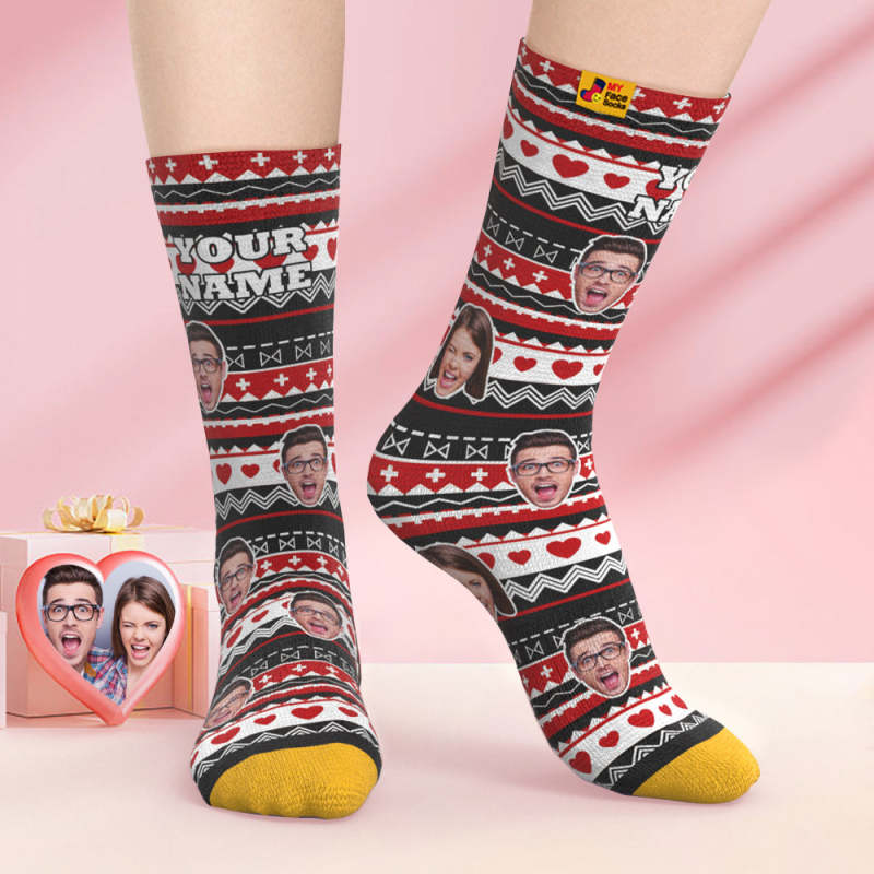 Custom 3D Digital Printed Socks Valentine's Day Gifts Heart Funny Face Socks