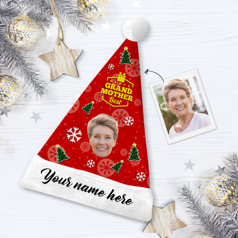 Custom Best Grandmother Face Santa Hat Add Pictures And Name