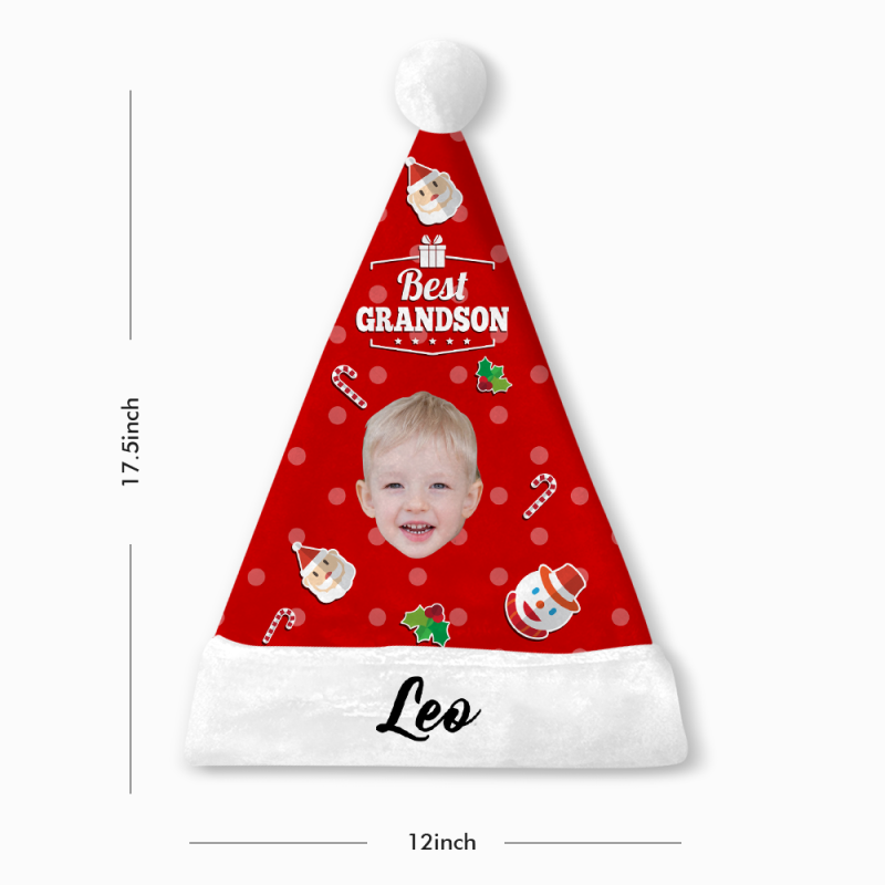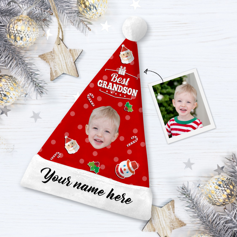 Custom Best Grandson Face Santa Hat Add Pictures And Name