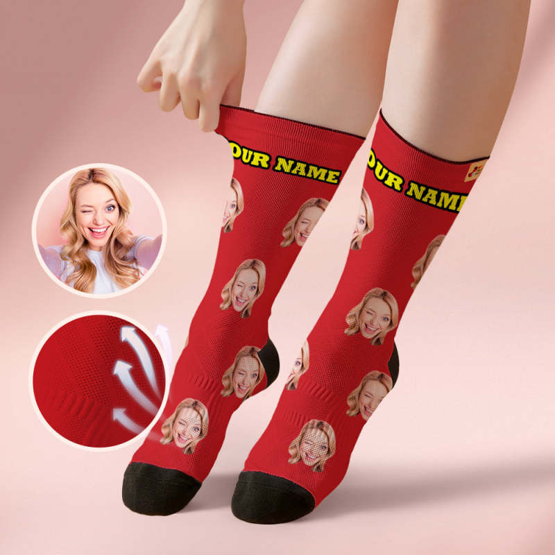 Custom Breathable Face Socks Online Preview Add Pictures And Name Colorful - Red