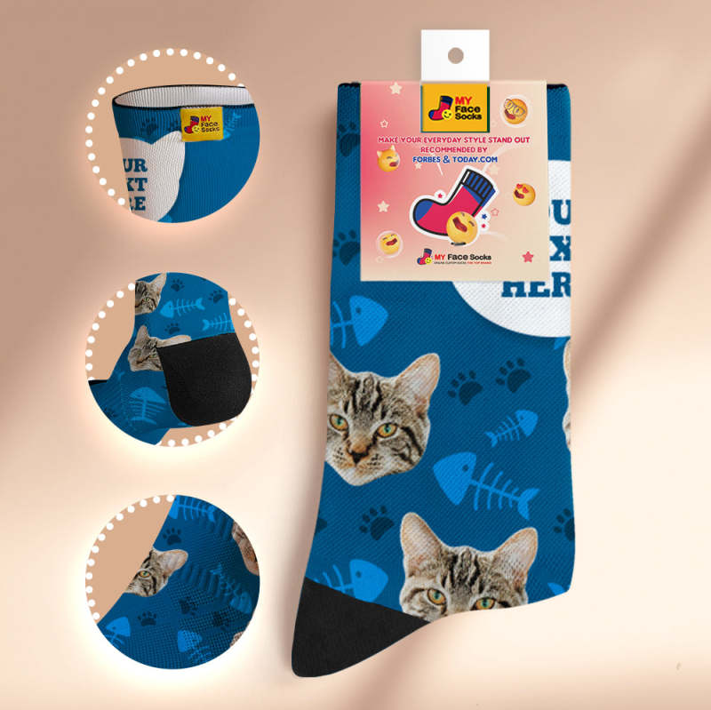 Custom Breathable Soft Socks Face Socks Add Pictures and Name - Cat - Black