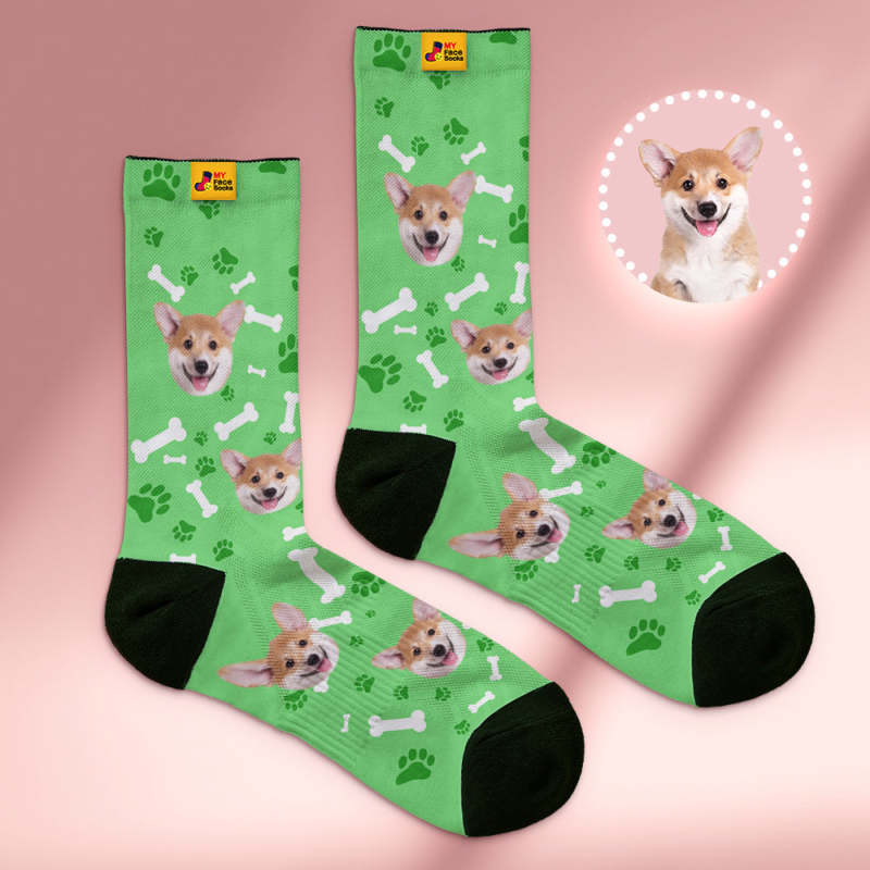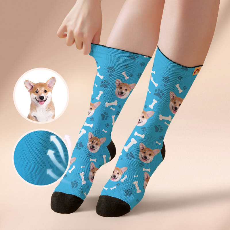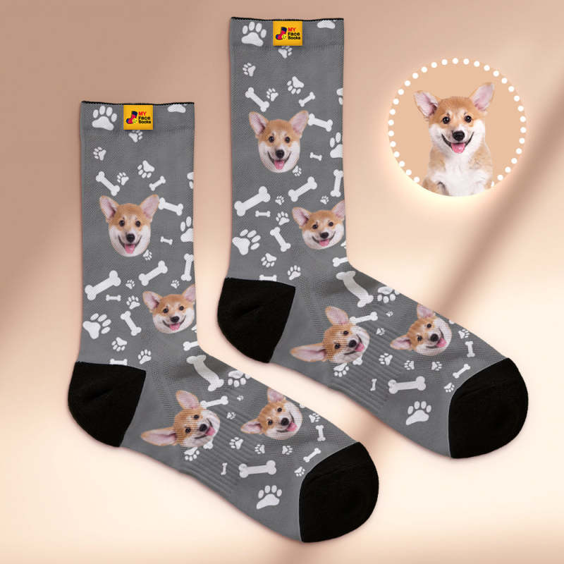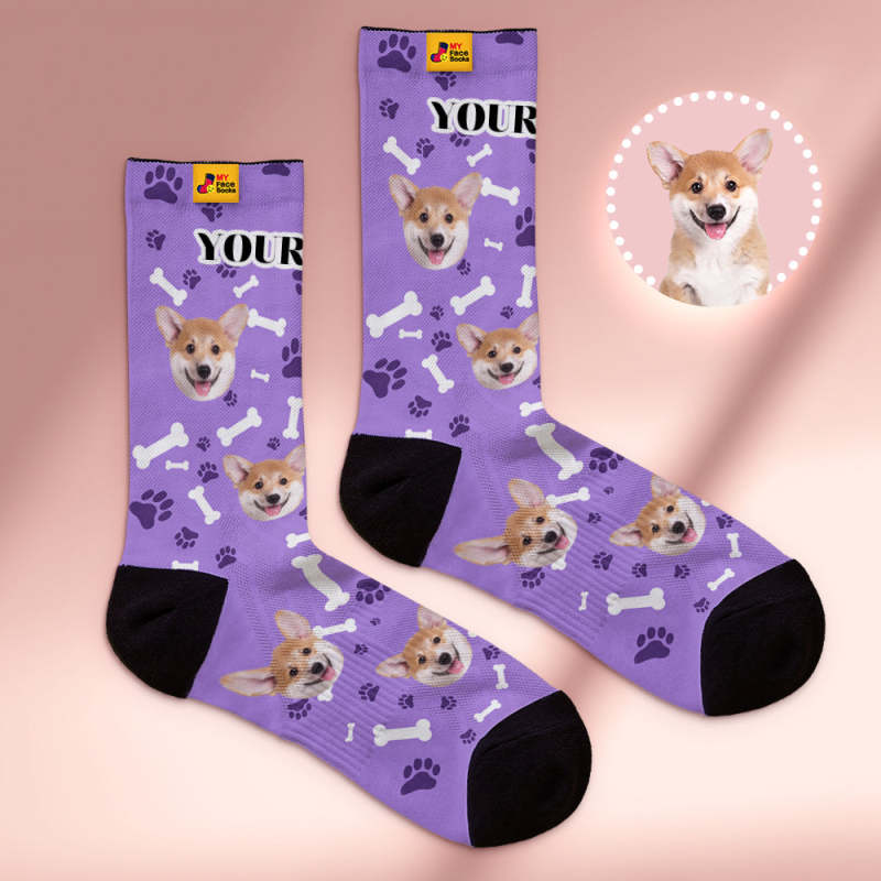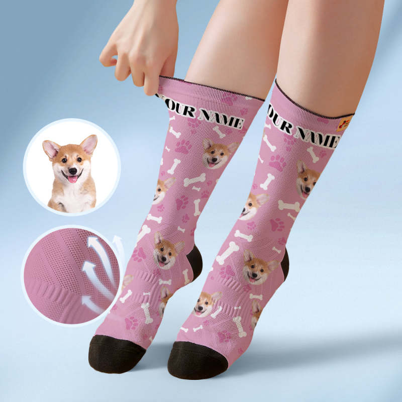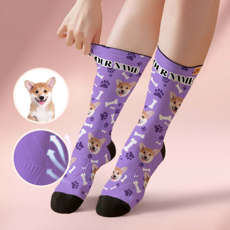 Custom Breathable Soft Socks Face Socks Add Pictures and Name - Dog -Black