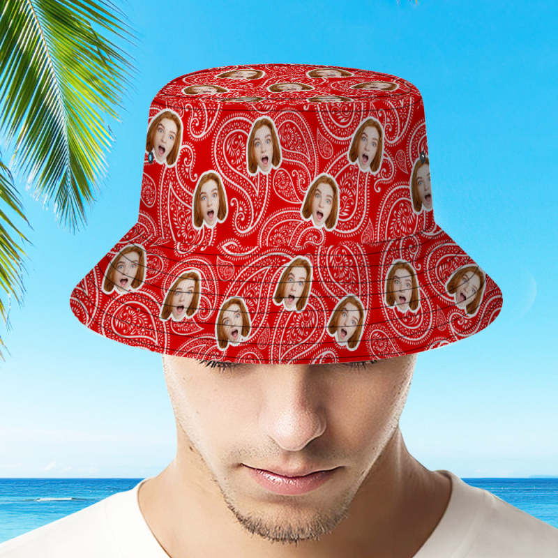 Custom Bucket Hat Unisex Face Bucket Hat Personalized Wide Brim Outdoor Summer Cap Hiking Beach Sports Hats Paisley Print