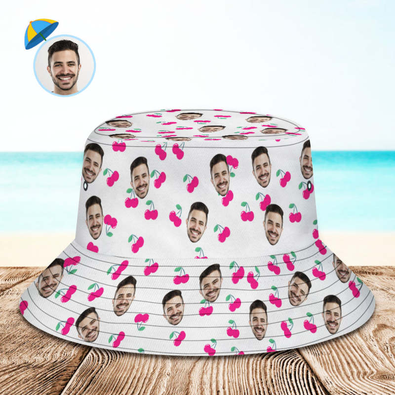 Custom Bucket Hat Unisex Face Bucket Hat Personalize Wide Brim Outdoor Summer Cap Hiking Beach Sports Hats Gift for Lover - Cherry
