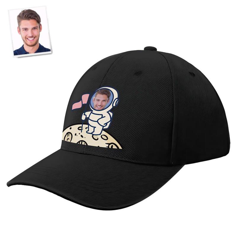 Custom Cap Personalised Face Baseball Caps Adults Unisex Printed Fashion Caps Gift - Astronaut on the Moon