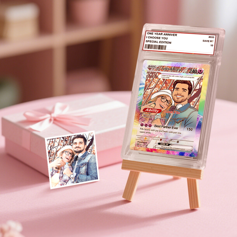 Make memories last with a custom trading card! Personalized with your photo and details, this unique magnetic replica card is the perfect gift for birthdays, anniversaries, or couples.