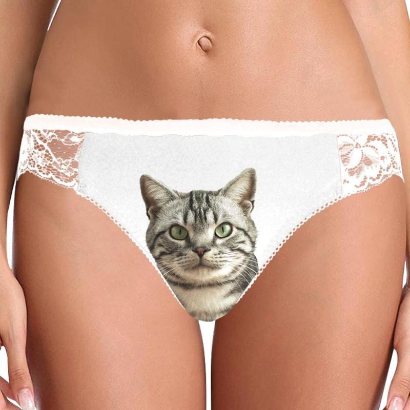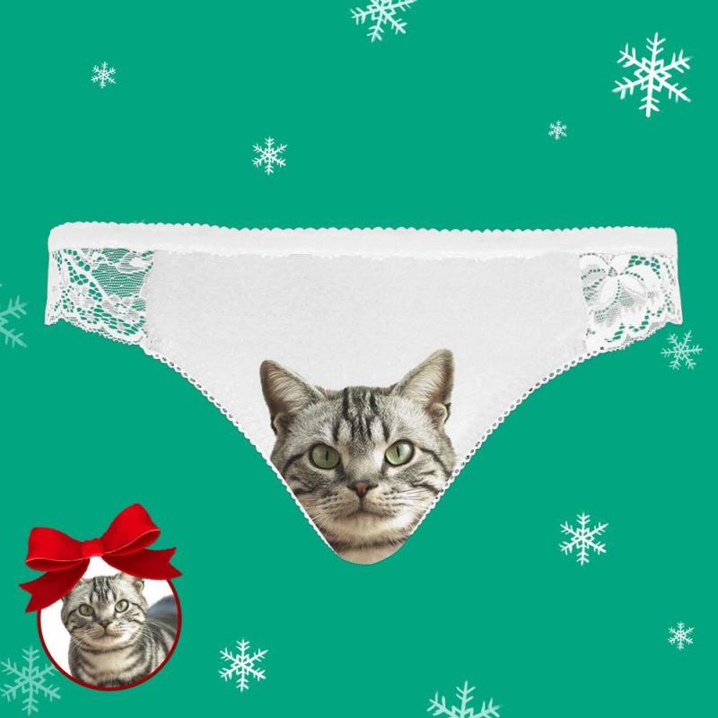 Custom Cat Face Photo Women's Lace Panties - White