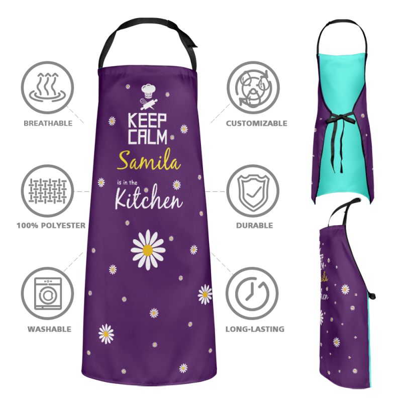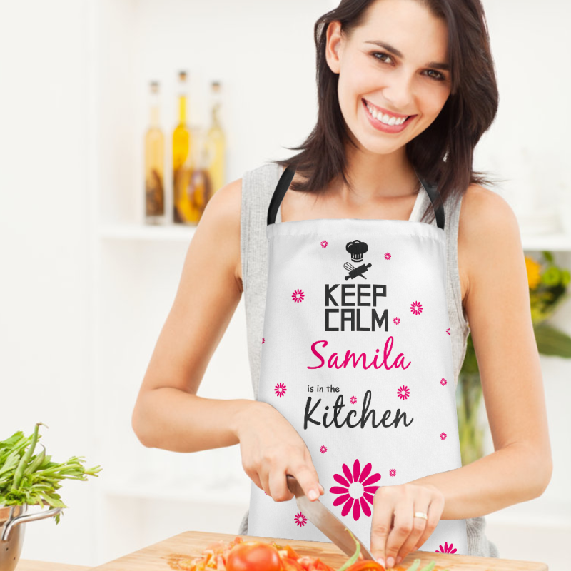 Custom Cooking Apron For Mom Flowers With Your Name - Keep Calm In The Kitchen