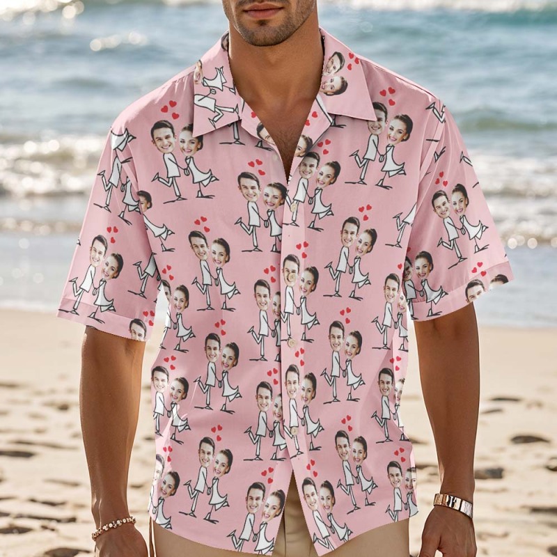 Custom Couple Face Hawaiian Shirt Cute Position Shirt Personalized Couple Hawaiian Shirt With Face Photo Hawaiian Shirt Anniversary Gift Idea
