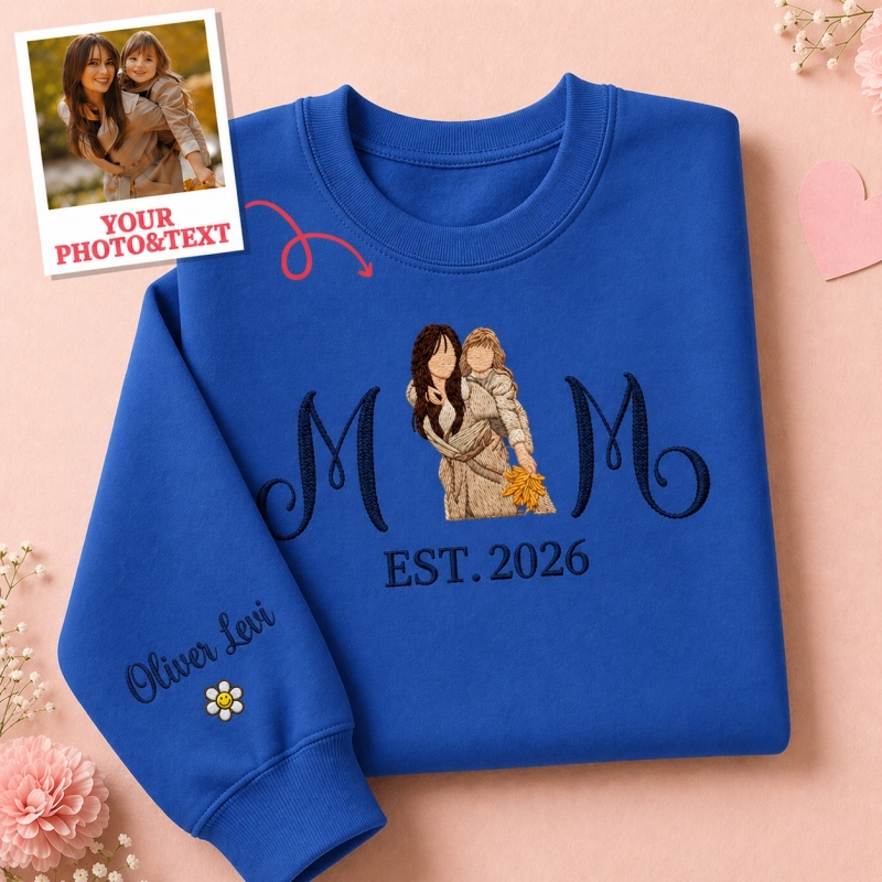 Custom Embroidered Mum Sweatshirt with Mum Kids Portrait