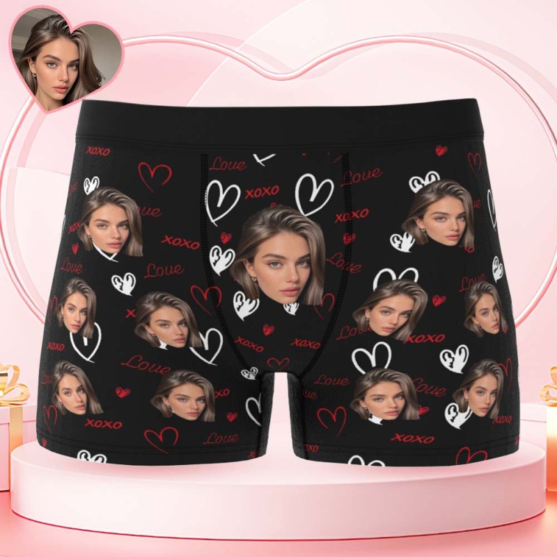 Custom Face and XOXO Heart Pattern Men's Underwear Romantic Custom Gift