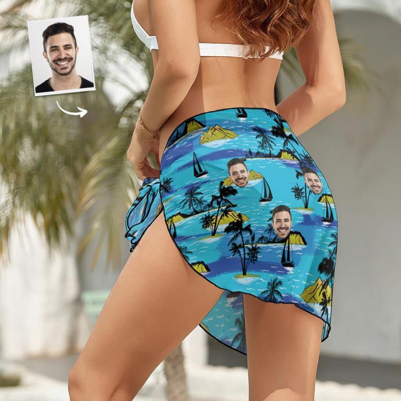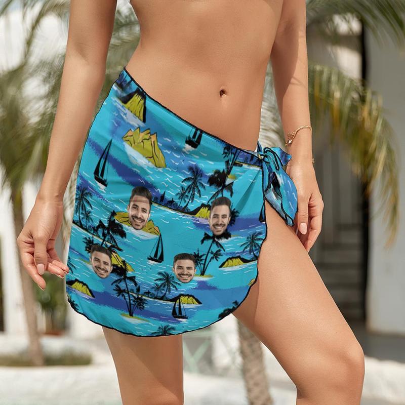 Custom Face Beach Wrap Women Short Sarongs - Island Vacation