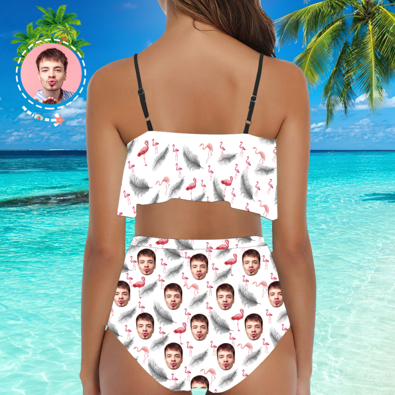Custom Face Bikini Women's Ruffle Summer Bikini High Waisted Bathing Suits Gift For Her - Feather