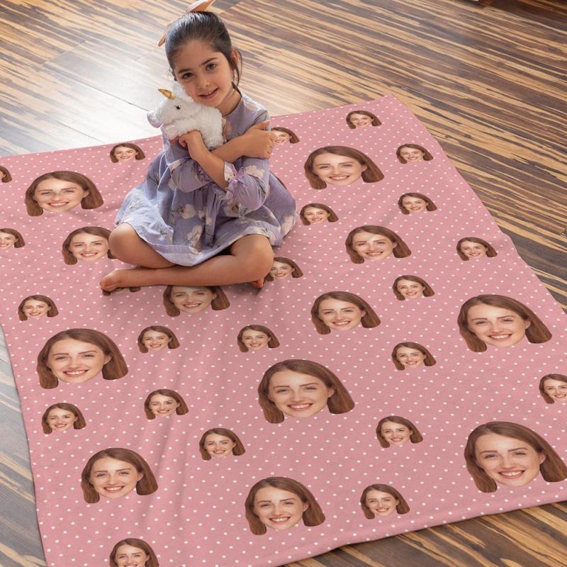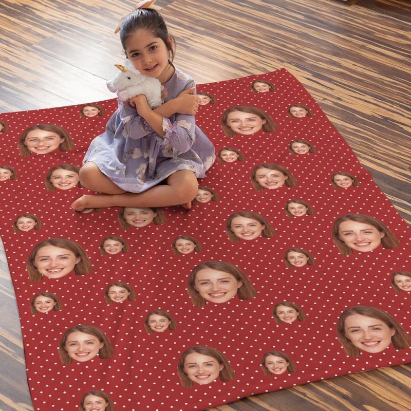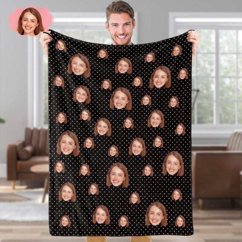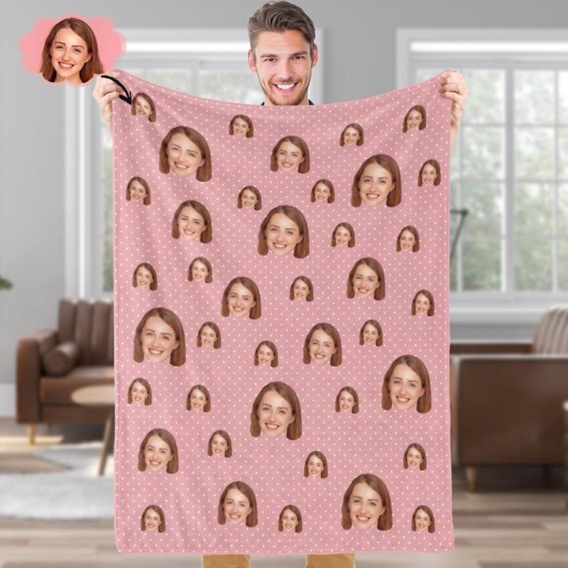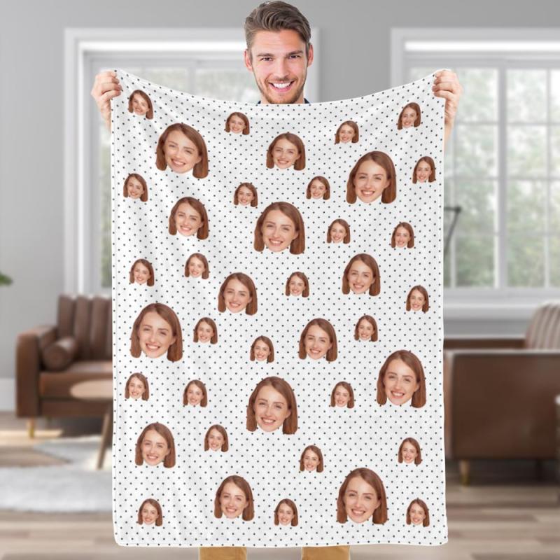 Custom Face Blankets Personalized Fleece Blanket Gifts For Family Polka