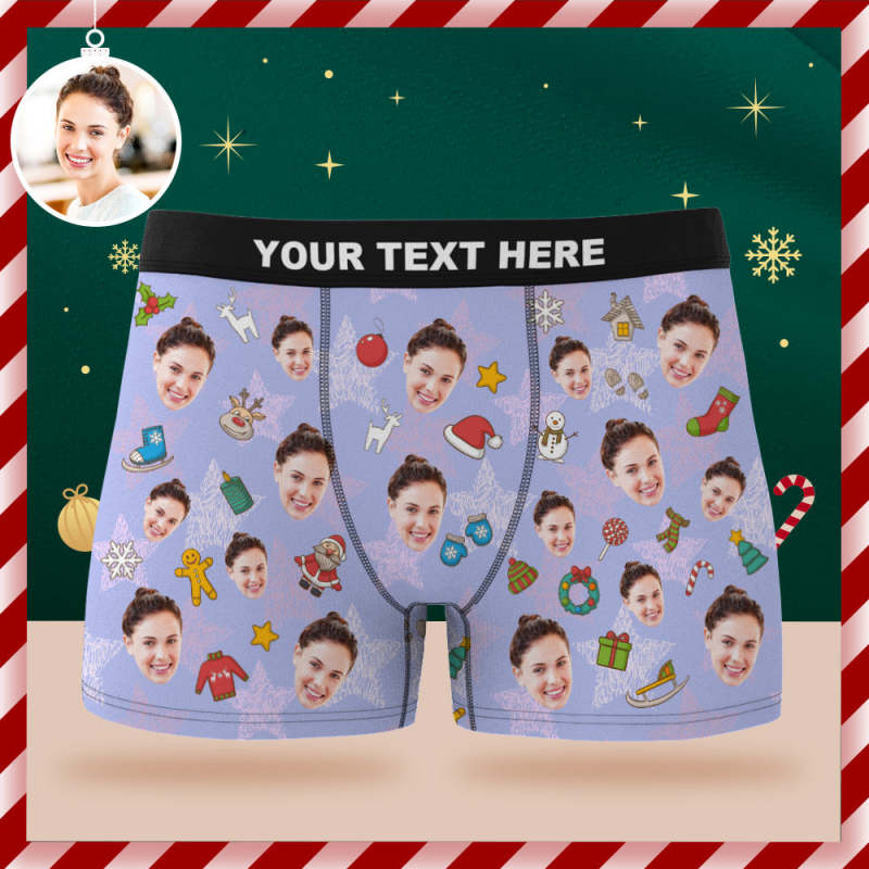 Custom Face Boxer Briefs Personalized Purple Underwear Merry Christmas Gift for Him