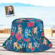 Custom Face Bucket Hat Number and Face hat Dark Blue Sleeves and Pink Flowers