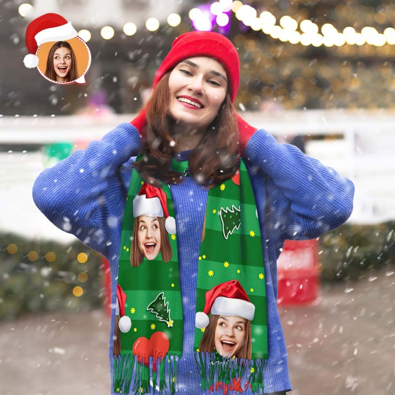 Custom Face Christmas Scarf Personalized Design Christmas Heart