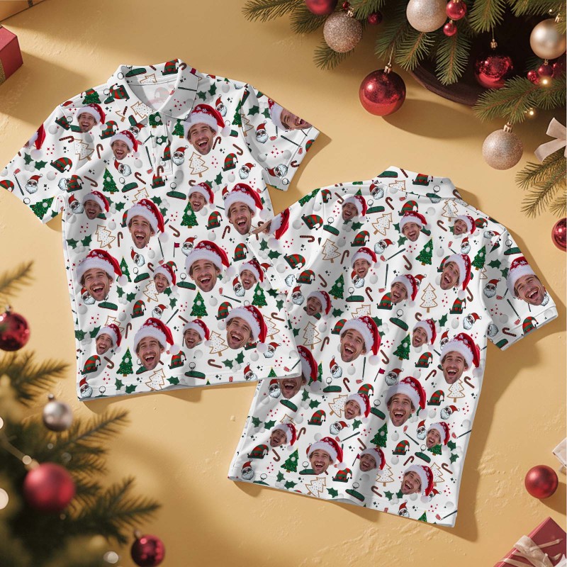 Custom Face Christmas Tree Polo Shirt Gift Box Golf Polo Shirt Personalized Golf Shirt for Men Holiday Gifts