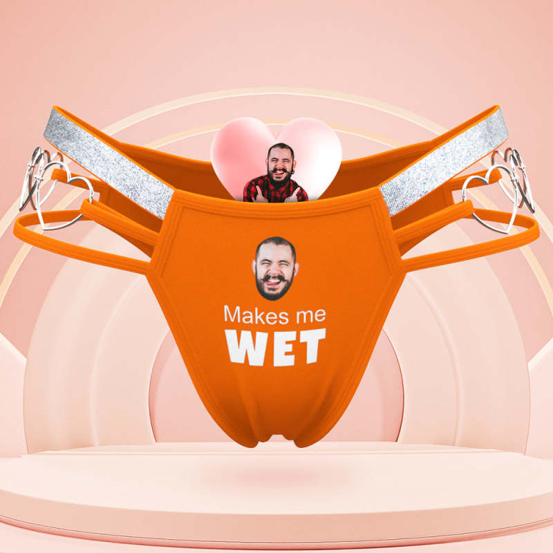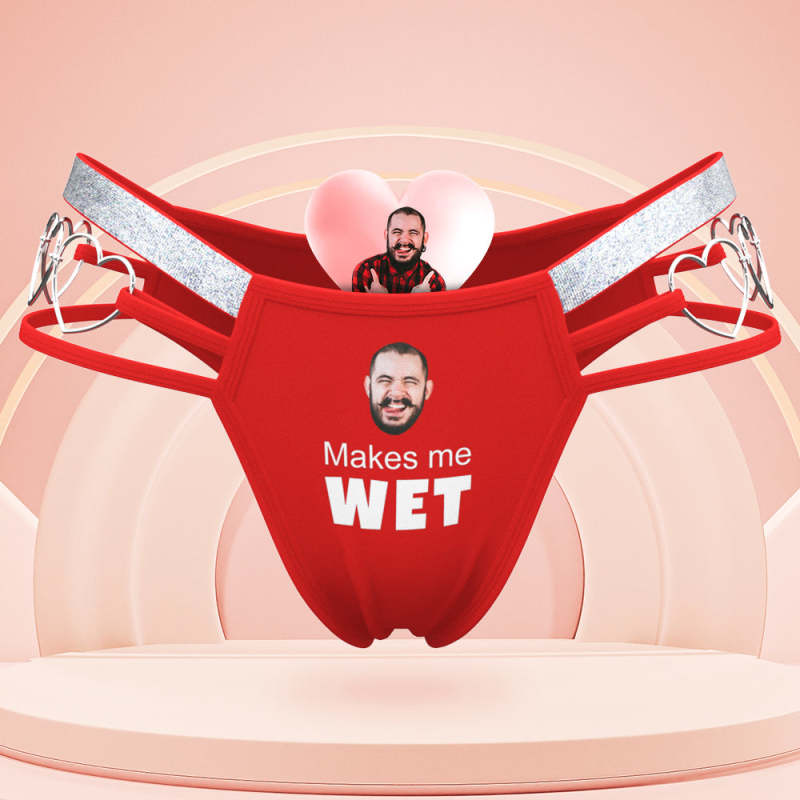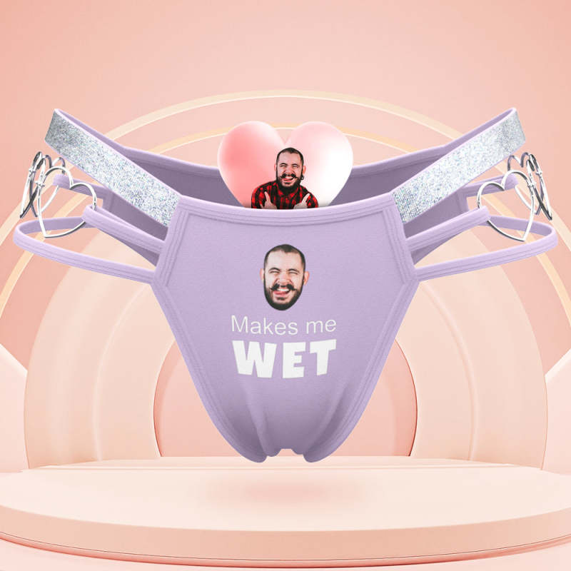 Custom Face Glitter Tape Cut Out Ring Panty Personalized Makes Me Wet Thong Valentine's Day Gift