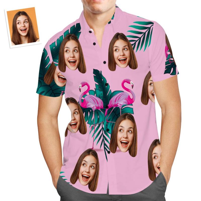 Custom Face Hawaiian Shirt Funny Flamingo Vacation Beach Shirt Gift for Men