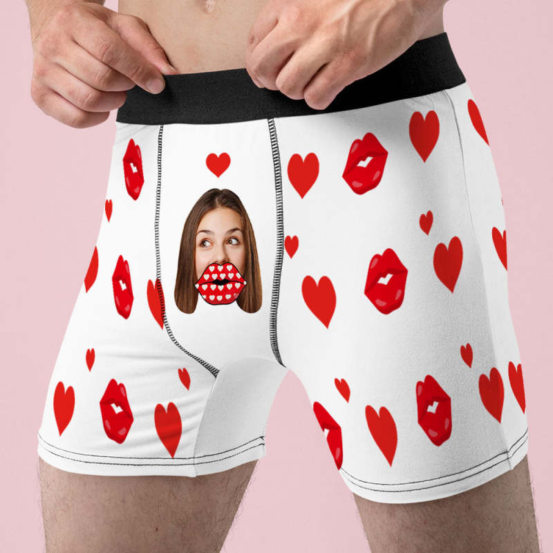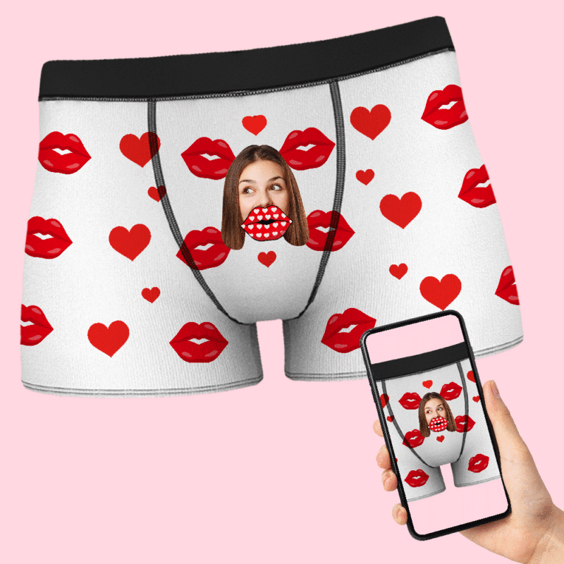 Custom Face Heart Boxer AR View Personalized Funny Lips Boxer Shorts Valentine's Day Gift