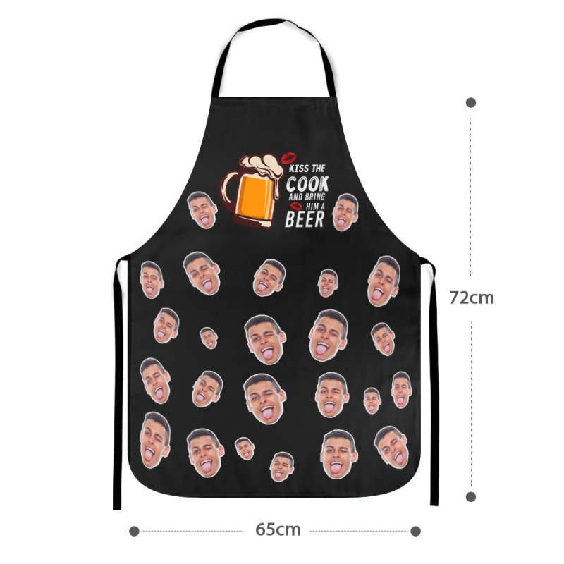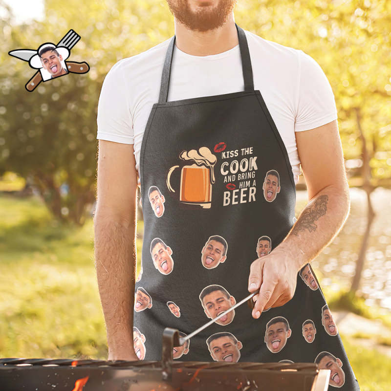 Custom Face Kitchen Apron Father's Day Gifts - Kiss the Cook and Bring Him a Beer!