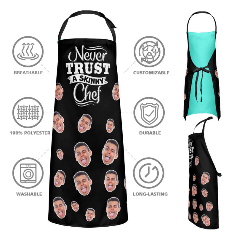 Custom Face Kitchen Apron Father's Day Gifts - Never Trust a Skinny Chef Apron