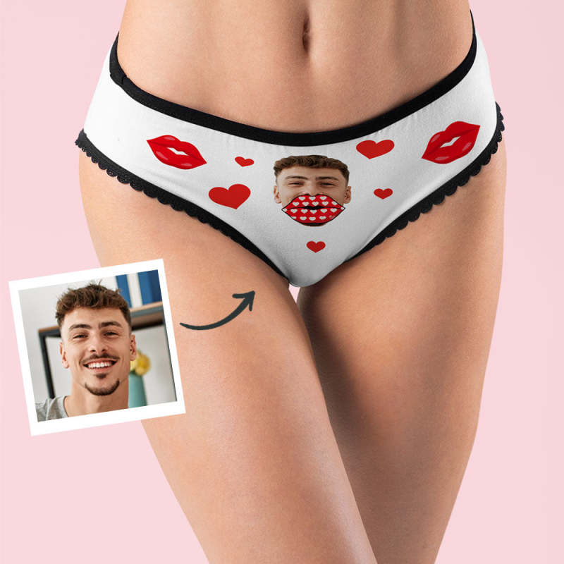 Custom Face Lips and Heart Underwear for Her AR View Personalized Thongs Valentine Gift