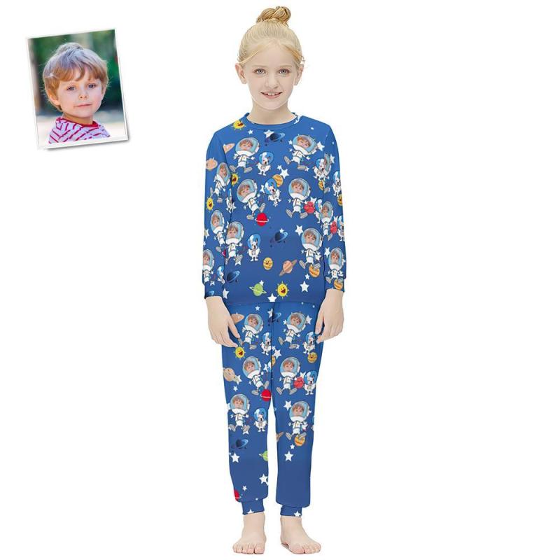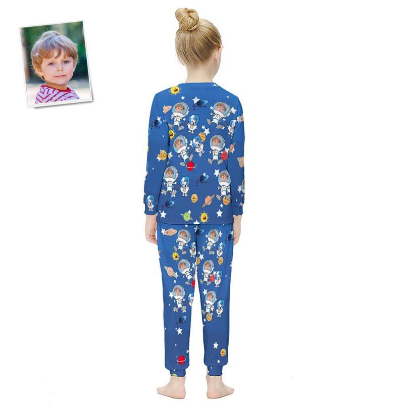 Custom Face Long Sleeve Pajamas Kids Suit Birthday Present - Take Pets Into Space