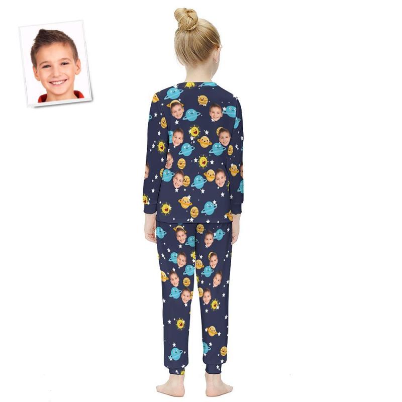 Custom Face Long Sleeve Pajamas Kids Suit - Galaxy