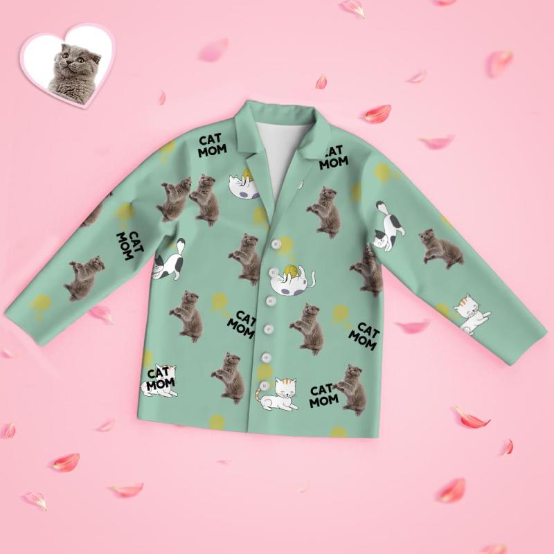 Custom Face Long Sleeve Pajamas Sleepwear Set - Cat Mom