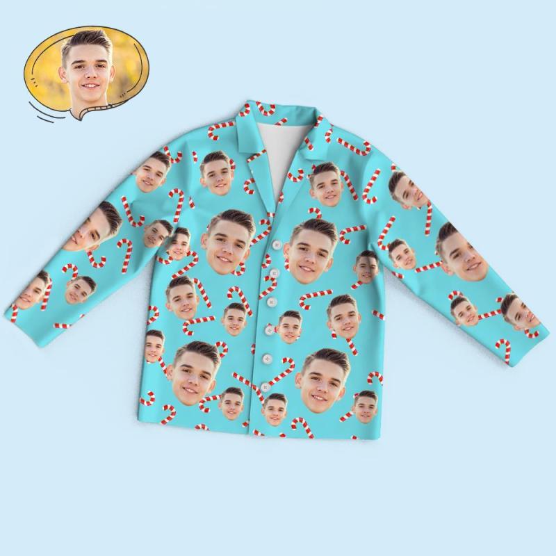 Custom Face Long Sleeve Pajamas Sleepwear Set - Christmas Candy Cane