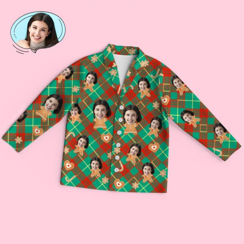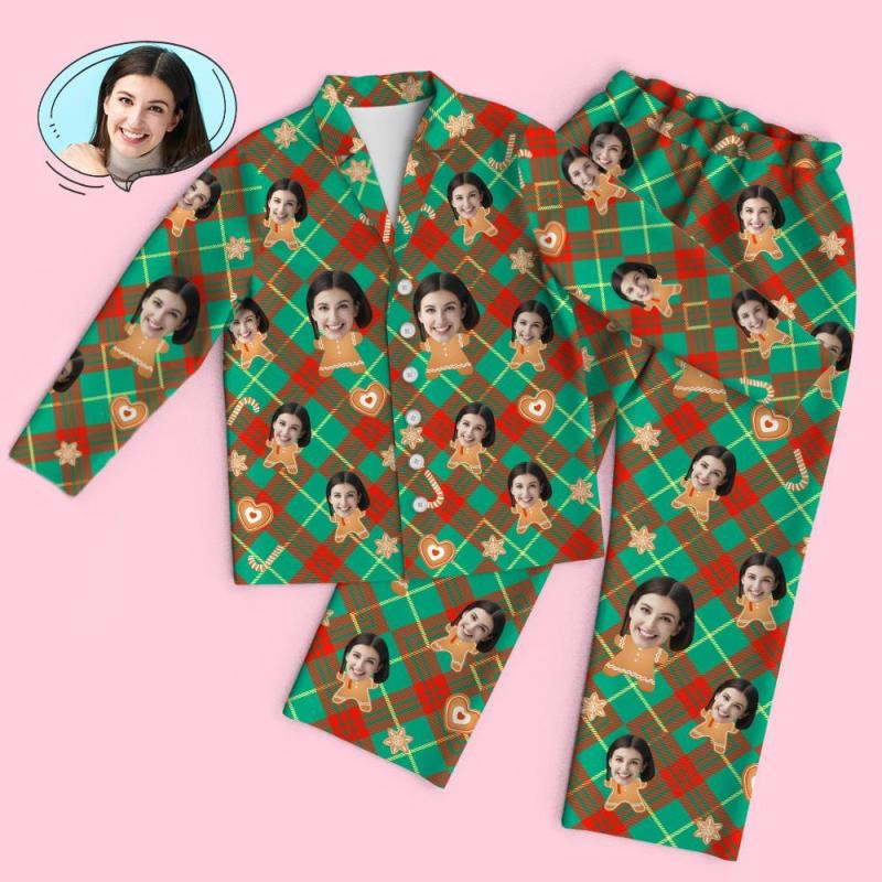 Custom Face Long Sleeve Pajamas Sleepwear Set - Christmas Gingerbread