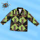 • Matching shirt with notched lapels; button front.