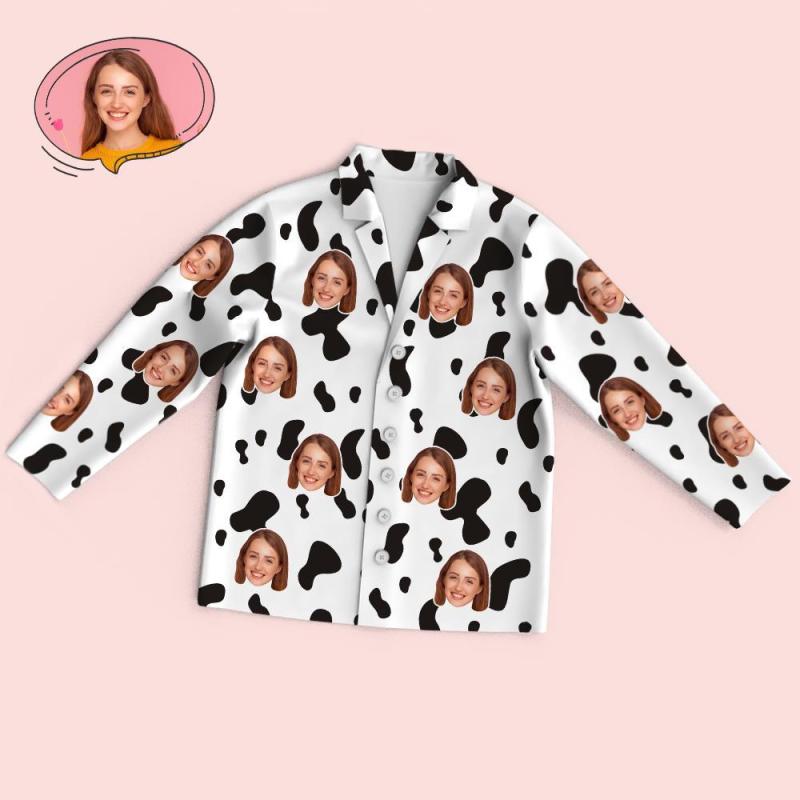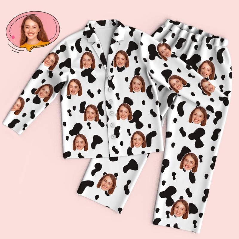 Custom Face Long Sleeve Pajamas Sleepwear Set - Cow